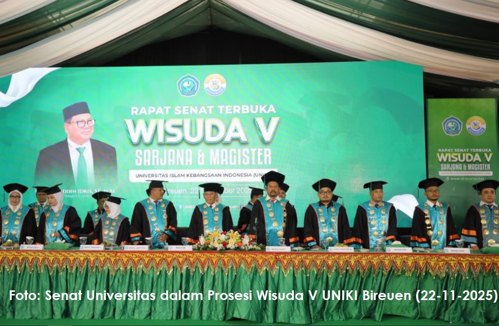 Pada acara prosesi Wisuda Akbar Angkatan V Universitas Islam Kebangsaan Indonesia (UNIKI) Bireuen, kemarin (Sabtu, 22-11-2025) mewisuda sejumlah 839 alumninya. Diantaranya terdapat sebanyak 80 nama-nama lulusan Pascasarjana (S2) Magister Manajemen Fakultas Ekonomi & Bisnis.
